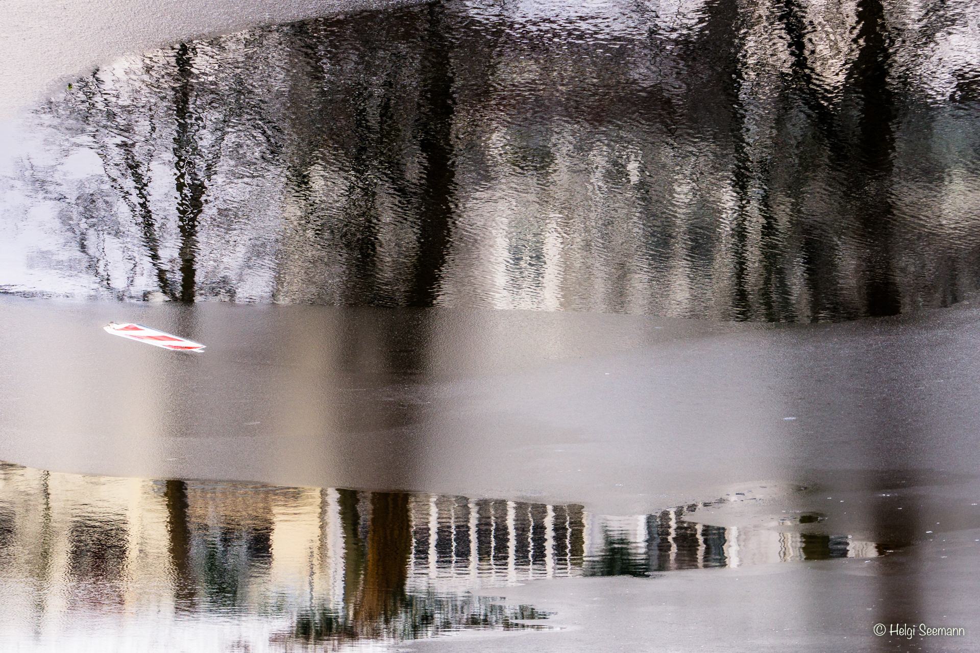 Wasser mit dünnen Eisschichten - Weser und Wallanlagen