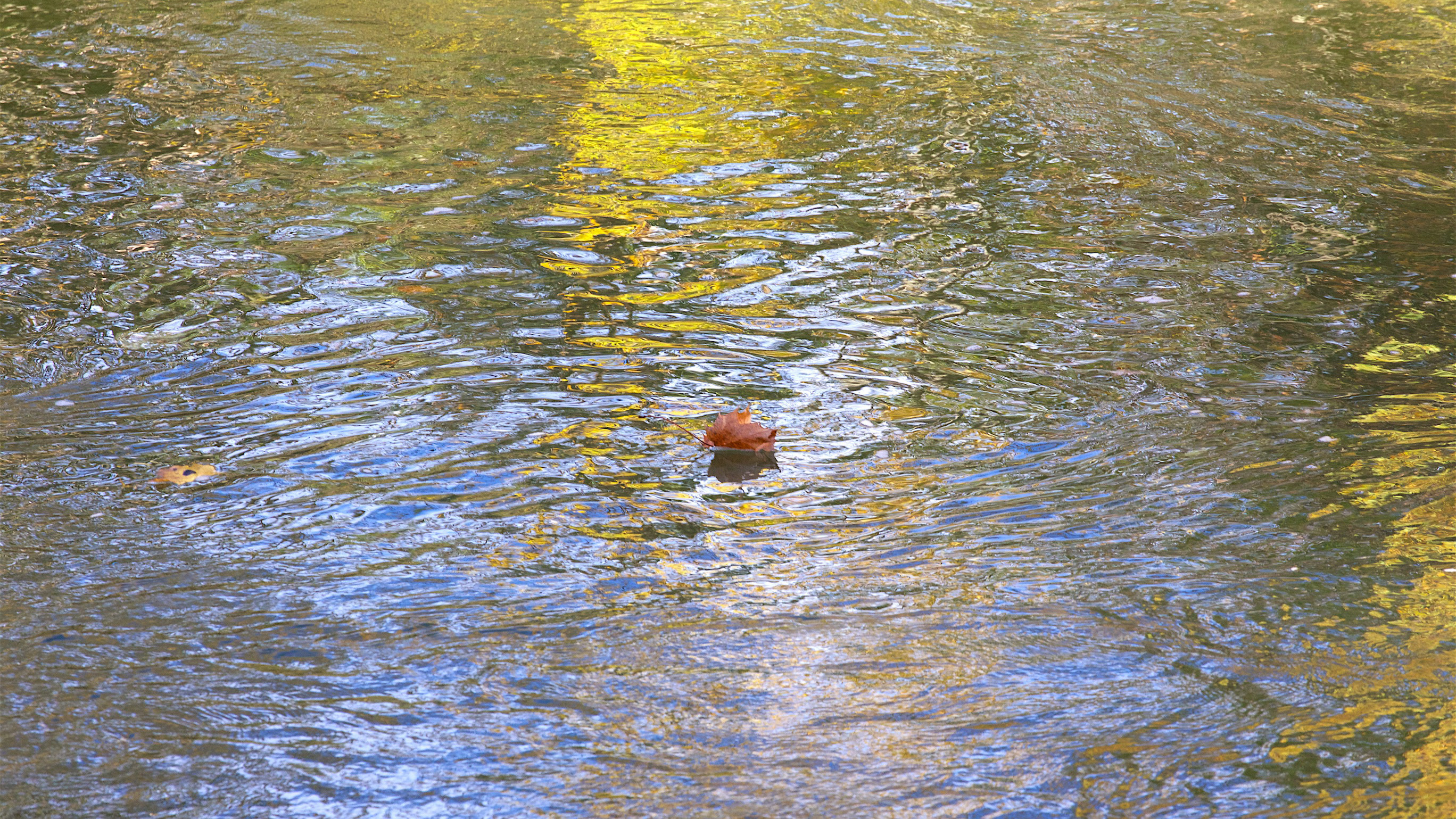... eines Herbstblattes, das am Fotografen vorbeischwimmt.